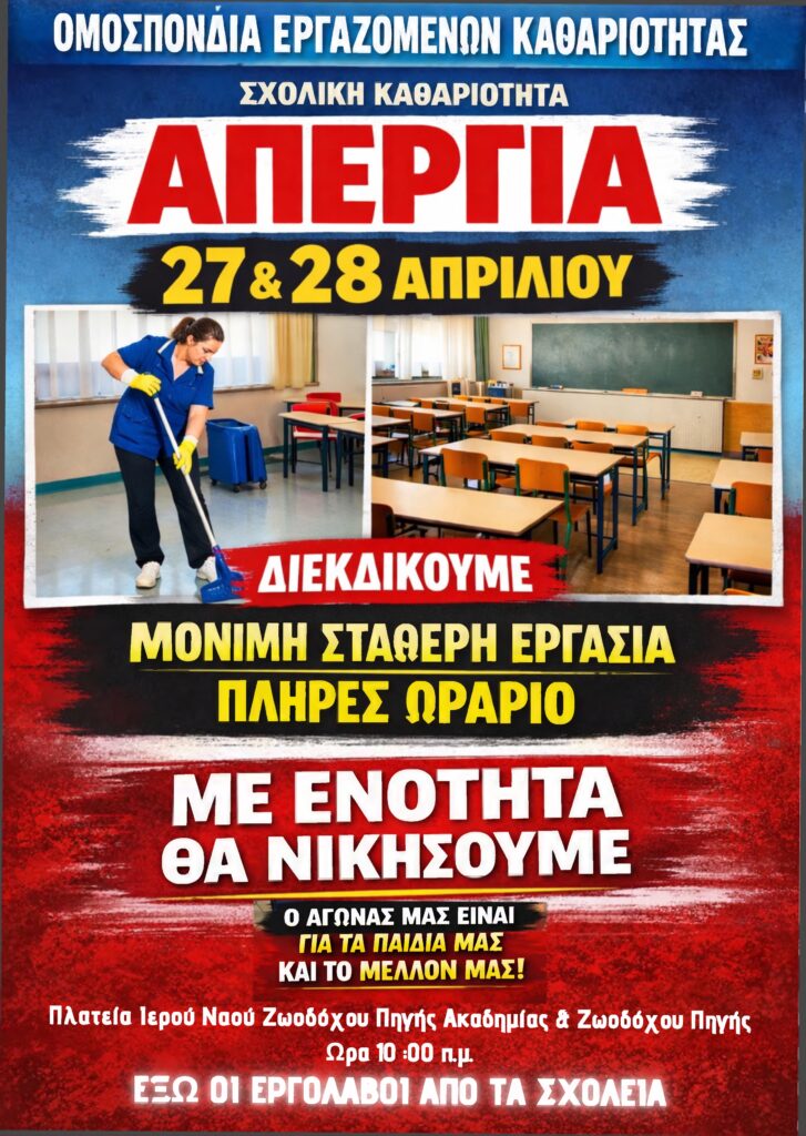 Σε τροχιά δυναμικών διεκδικήσεων εισέρχονται οι εργαζόμενοι και οι εργαζόμενες στην καθαριότητα των σχολικών μονάδων της χώρας, στέλνοντας ένα ξεκάθαρο μήνυμα προς την Πολιτεία και την Τοπική Αυτοδιοίκηση. Με μια ανακοίνωση-μανιφέστο, οι άνθρωποι που διασφαλίζουν την υγιεινή των παιδιών μας στα σχολεία, δηλώνουν πως η υπομονή τους εξαντλήθηκε, ζητώντας το τέλος του καθεστώτος της εργασιακής επισφάλειας και των «μισθών πείνας».